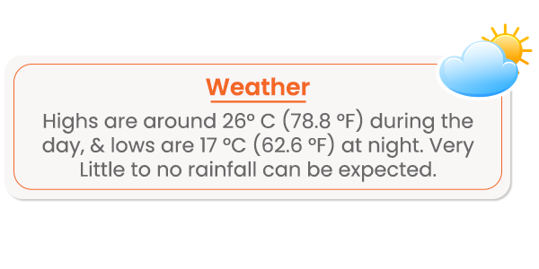 - Pleasant Weather: December is the time when the temperature drops to 19 degrees Celsius to 26 degrees Celsius, making it the perfect time for Al fresco dining, beach days, water sports, golf, and outside exploration.