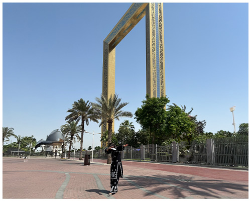 Evening visits can be particularly enjoyable, offering stunning sunset views and beautiful illuminated scenery as the city lights up at night, the perfect opportunity to click Dubai Frame photos.